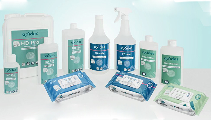 Wir lieben Hygiene, und das nicht nur im medizinischen Bereich. Unsere axides -Serie versorgt Sie mit allem, was Sie für einen hygienischen Alltag brauchen – praktisch als Tücher im Flowpack oder als Flüssigdesinfektion in mehreren Verpackungsgrößen.