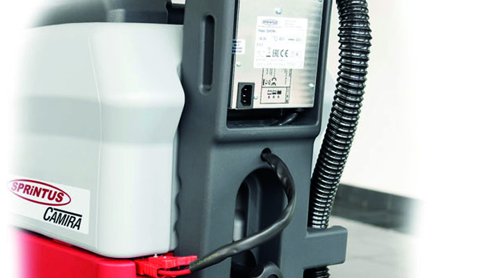 - Walzenmaschine: Eine Walze mit einem bürstenähnlichen Aufsatz (wahlweise auch mit Padaufsatz) bearbeitet den Boden. Je nach Modell wird hinter, optional auch vor der Walze abgesaugt. Ihr Vorteil bei beidseitiger Absaugung ist die Absaugung auch beim Rückwärtsfahren. Konkret können Sie z.B. vorwärts in eine WC Kabine fahren und rückwärts wieder hinaus.
