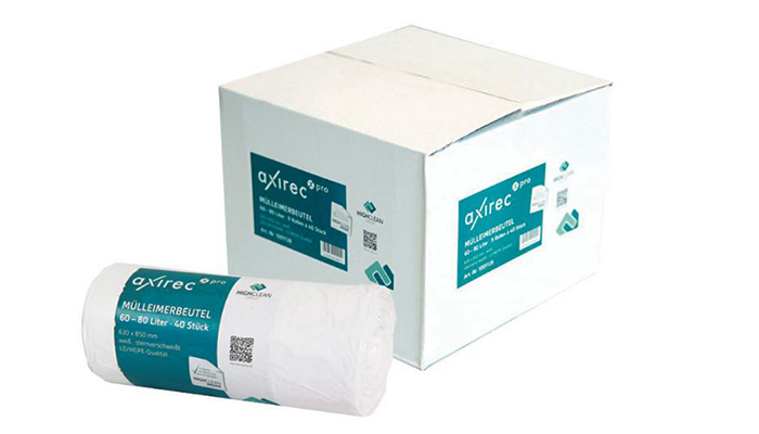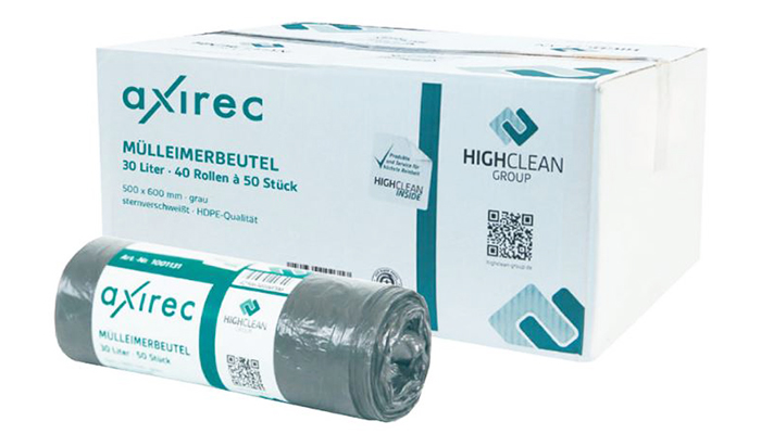 Der axirec Mülleimerbeutel in 30 Liter bietet Ihnen HDPE Qualität in weißer und grauer Ausführung.