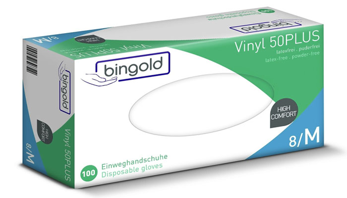 Vinyl Handschuhe und Lebensmittelunbedenklichkeit? Das schloss sich bis vor kurzem aus. Nun bietet Bingold für Sie eine Lösung für diese Marktlücke. Der neue Bingold Vinyl ALLFOOD hält was sein Name verspricht. Ein verlässlich phtalatfreier Vinyl Handschuh der uneingeschränkt in der Lebensmittelbranche zu nutzen ist, auch bei öligen und fettigen Lebensmitteln. Dank eines speziellen Zusatzes ist der Bingold Vinyl ALLFOOD der erste echt lebensmittelunbedenkliche Einweghandschuh aus Vinyl.